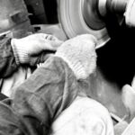 本日の写真は昨日の続きになります。材質はアルミのフレームとなります。溶接から各種仕上げ・ビードカット・ヘアライン加工手作業・バフ研磨などをしていきます。写真はフレームのコーナー部となるので曲げ加工の傷やシワが発生しています。無傷の状態でヘアライン加工ができれば良いのですが、各加工の工程で何らかの痕がついています。ヘアライン加工にもバフ研磨時の鏡面仕上げのように粗目工程から細目工程が存在します。深い傷がある場合は粗目工程、浅い傷は中目工程、擦り傷程度は細目工程といった具合に素材の状態に合わせて工程を変えていきます。ヘアライン加工に限らず、バフ研磨作業においても粗目作業からのスタート時間もコストもかかってしまいます。難しいことですが、無傷の状態でのバフ研磨並びにヘアライン加工がすることが理想です。